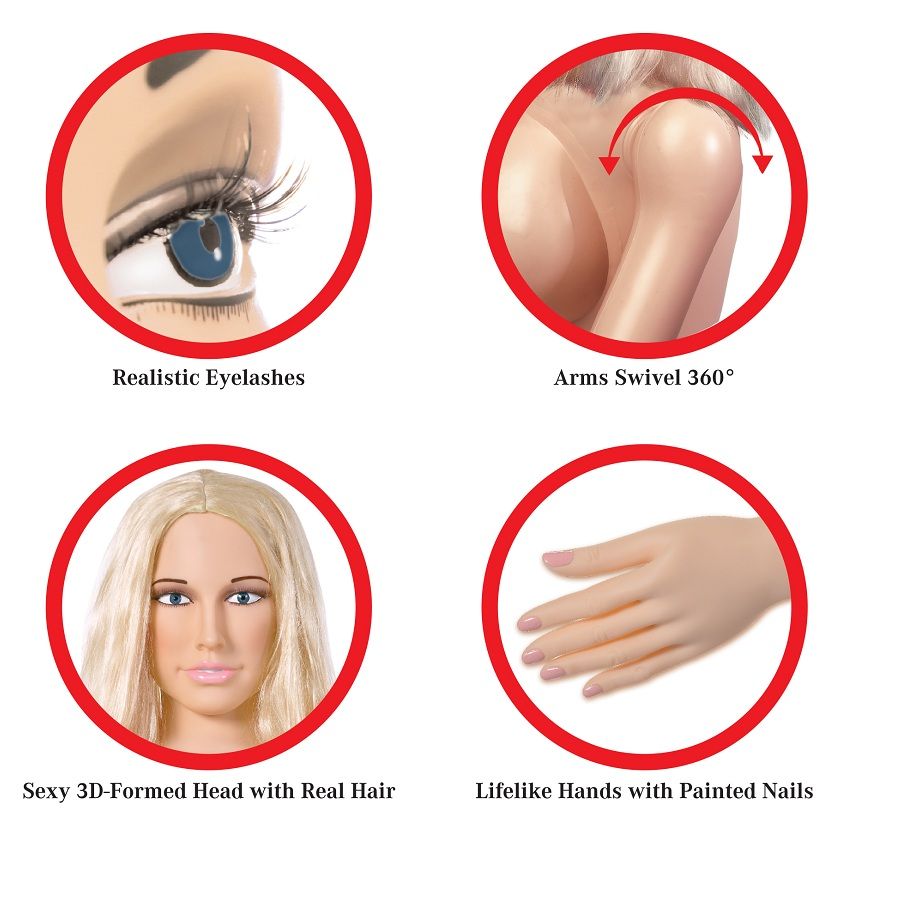 Tämä uskomaton, täytettävä, luonnollisen kokoinen nukke on suunniteltu huolellisesti ja siinä on realistisia ominaisuuksia todella realistista kokemusta varten. Hänen viehättävät 3D-muovatut kasvonsa on viimeistelty ylellisillä hiuksilla, jotka odottavat innolla, että ne vedetään taaksepäin. Hänen pirteät rintansa antavat sinun nauttia hänen superpehmeistä ja aidoista nänneistään. Hänen vaginansa ja takapuolensa ovat tiukat ja erittäin realistiset.