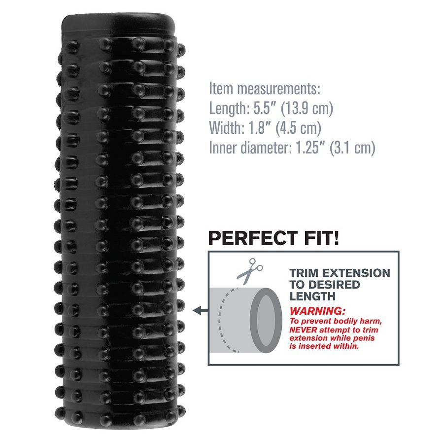 Heti kun sujautat tämän 5,5 tuuman mittaisen suurentavan holkin sisään, ymmärrät miksi kutsumme sitä Taianomaiseksi Nautintoholkiksi! Tämä superjoustava vyötärönympäryksen kasvattaja on vuorattu sadoilla pienillä kutittimilla ulkopuolella, jotka tarjoavat jännittäviä tuntemuksia ja tyydyttävää paksuutta kumppanillesi. Avoin pää antaa sinun tuntea jokaisen tuntemuksen ja silti nauttia kumppanisi luonnollisesta kosketuksesta. Käännä holkki nurinpäin ja käytä sitä uskomattomana soolohierojana! Leikkaa holkki täydellisen istuvuuden saavuttamiseksi ja nautinnon mahdollisuudet ovat rajattomat!