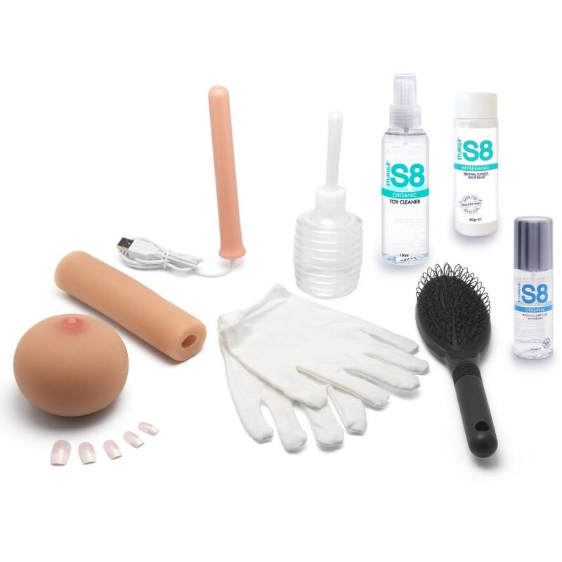 Tämä luksusnukke sisältää laajan valikoiman lisävarusteita, joiden avulla nainen näyttää ja tuntee olonsa parhaimmaksi kaikkina aikoina! Pakkaus sisältää kaksi tuhmaa alusvaatesettiä, S8 Quality -lelujenpuhdistusainetta, S8 Silky -liukuvoidetta, S8 Renewal -jauhetta, valkoiset puuvillakäsineet nuken siirtämiseen/käsittelyyn, setin vaihtokynsiä, USB-lämmityssauvan, puhdistuskastelulaitteen, hiusharjan ja kattavat hoito-ohjeet. Jos haluat aidon diilin, tämä Bangers Babe on täydellinen ja nautinnollinen kumppanisi! Huomaathan, että kokonsa ja painonsa vuoksi tätä tuotetta ei tule perinteisessä tuotepakkauksessa, vaan se toimitetaan huomaamattomassa pahvilaatikossa.