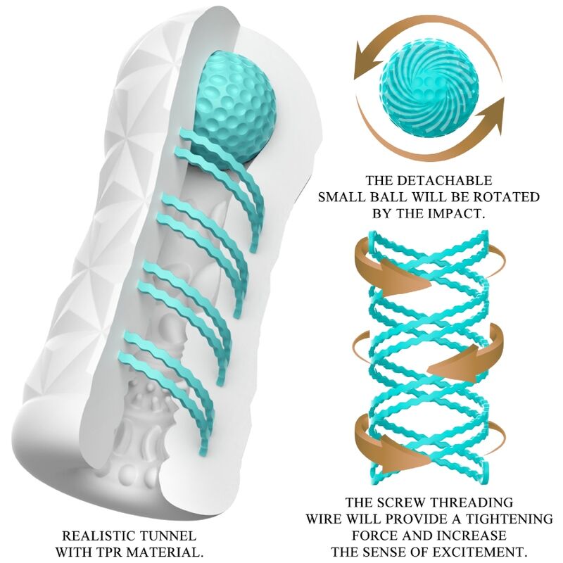 Pieni työkalu jättimäiseen masturbointihauskuuteen! Tässä läpinäkyvässä ja uudelleenkäytettävässä masturbaattorissa on pyörivä spiraali ja stimulaatiopallo sivulla. Pyörivä spiraali saa masturbaattorin pyörimään yhdynnän aikana ja päällä oleva pallo voi stimuloida oikeaa kohtaa ja antaa sinulle uuden tuntemuksen. Suojuksen sisällä on stimuloiva ja jännittävä rakenne, joka hieroo penistä intensiivisesti ja dynaamisesti manuaalisen työn aikana. Voit käyttää tätä tyylikästä ihoystävällistä masturbaattoria yhä uudelleen ja uudelleen. Erittäin helppokäyttöinen ja puhdasta nautintoa!