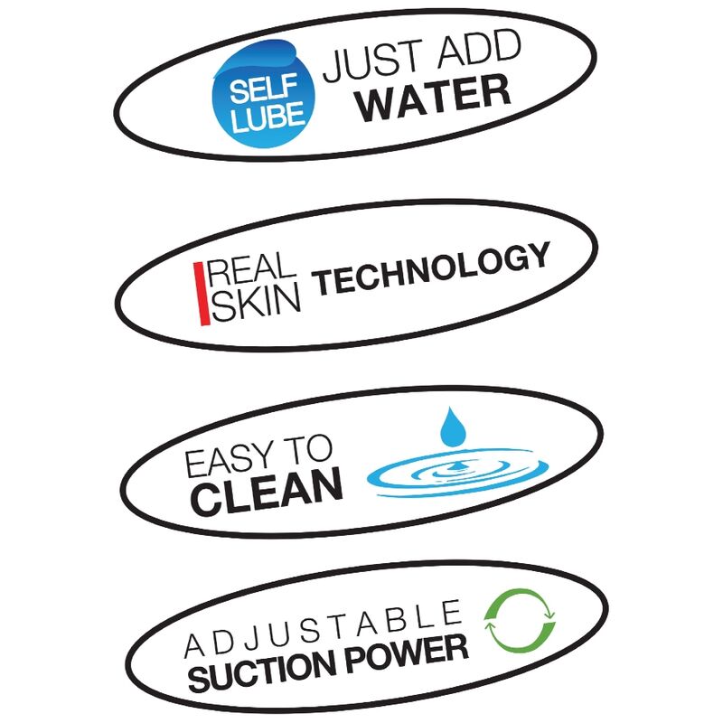 Denna diskreta design är utformad för att få dig att må bättre. Utformad för att ge maximal smek- och sugtillfredsställelse. Masturbatorn är självsmörjande, vilket innebär att du bara behöver tillsätta lite vatten för att njuta av ett halt äventyr med maximal glid! Med en len, realistisk textur och ett bekvämt grepp är det ett sensuellt val för intim tillfredsställelse.